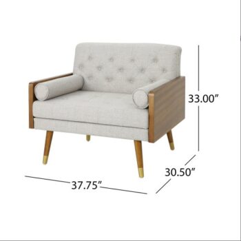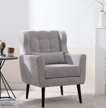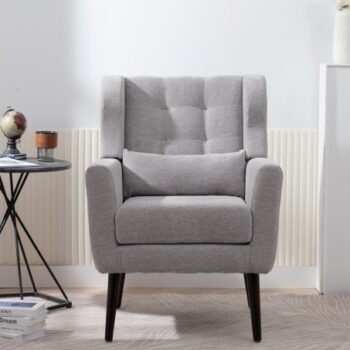 Comfortable Upholstered Lounge Chair, Small Space, Bedroom, With Pillows, Solid Wood Legs