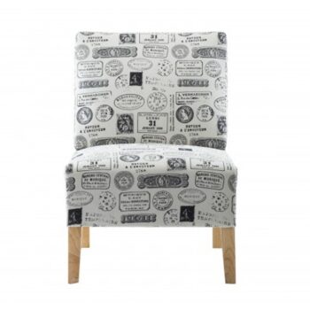 Modern Letter Printed Fabric Accent Chair Living Room Armless Chair with Natural color Wood Leg
