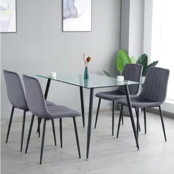Kitchen Chair 4-piece Set With Upholstered Seat And Metal Legs