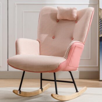Soft Houndstooth Fabric Rocking Chair For The Baby Room, Comfortable Wingback Gliding Rocking Chair