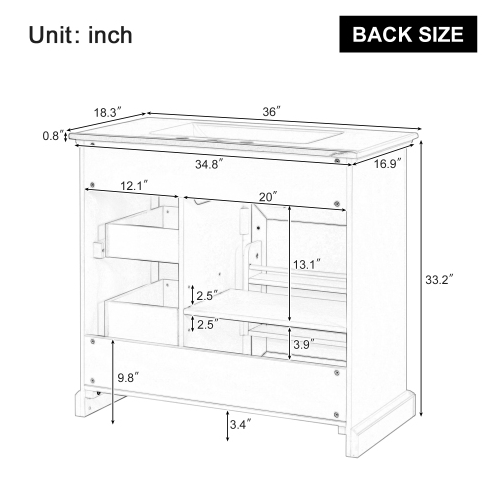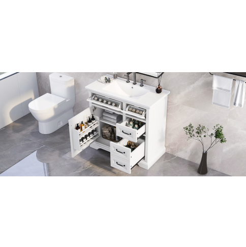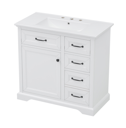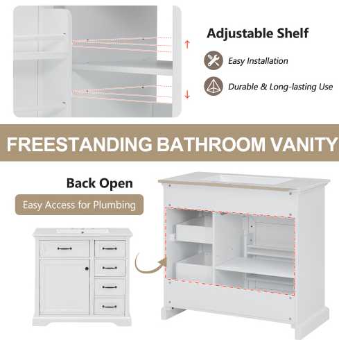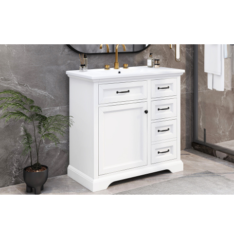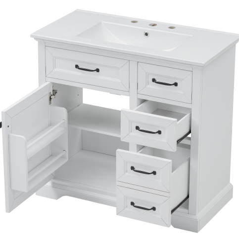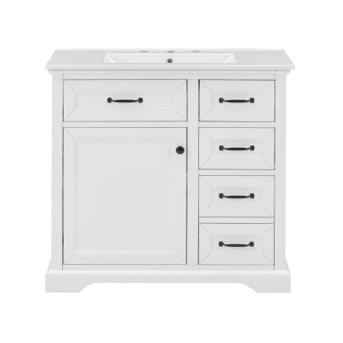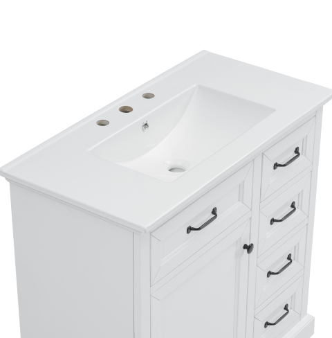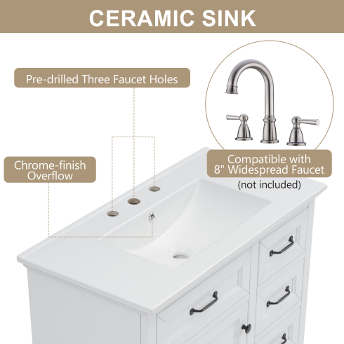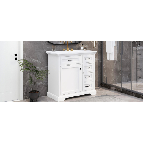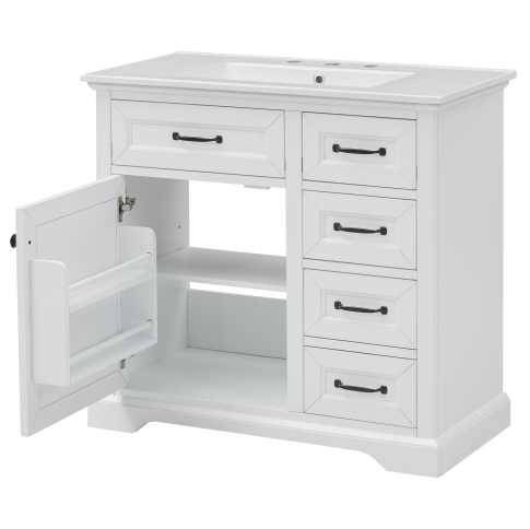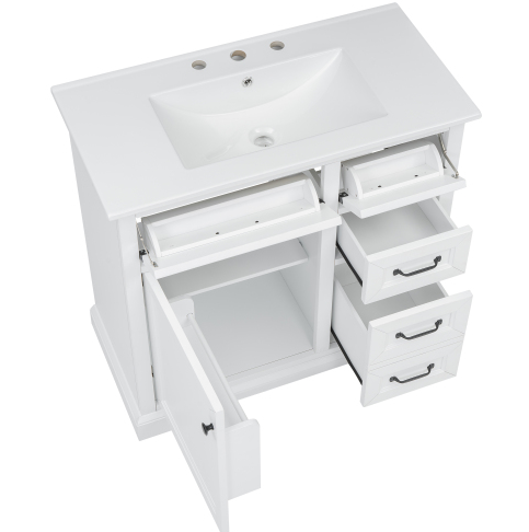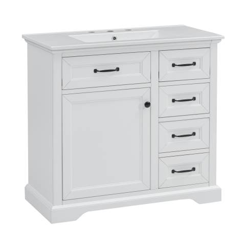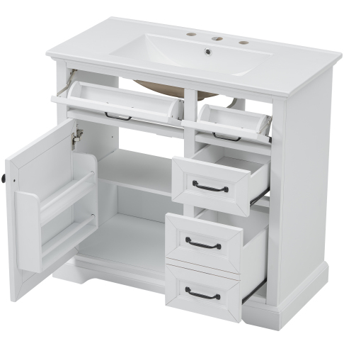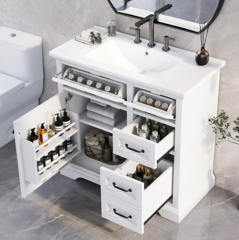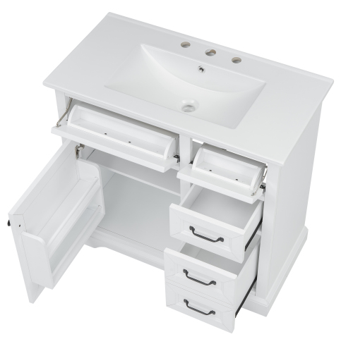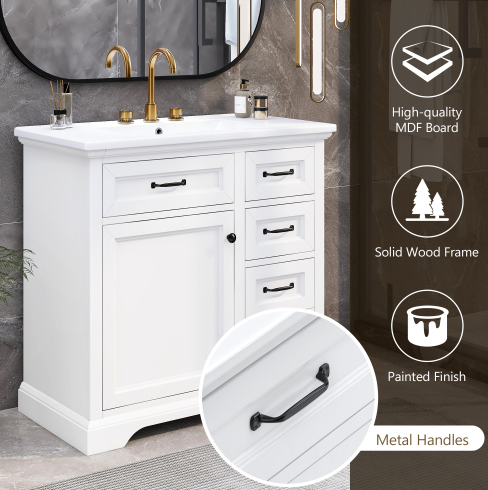 Product Name:36″ Bathroom Vanity with Sink, Ceramic Sink, 2 Tip-out Drawers, Soft Close Door Hinges, White