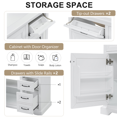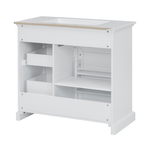 36Bathroom Vanity With Sink, Ceramic Sink, 2 Tip-out Drawers, Soft Close Door Hinges, White