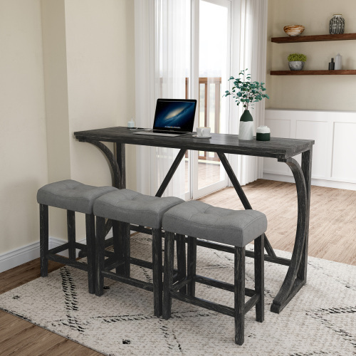 1. Sophisticated Look: Industrial Dining Table: This bar table and chair features a high-quality wood-like surface, making it a great addition to your kitchen, game room, or living room. Space-saving and a perfect fit: Three 18″ long x 11″ wide x 24″ high bar stools fit perfectly under the table when not in use, maximizing space while maintaining aesthetics. The floor mats not only improve stability but also prevent scratches on the floor.