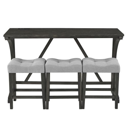 Bar Table Set with Power Outlet, Bar Table & Chair Set, 4 Piece Table Set, Industrial Breakfast Table Set, For Living Room, Dining Room, Game Room