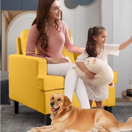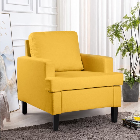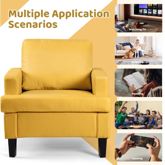 Product Name: Medieval Decorative Chair, Blue Linen Armchair, Upholstered Single Armchair for Bedroom and Living Room (Yellow)