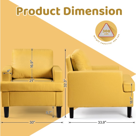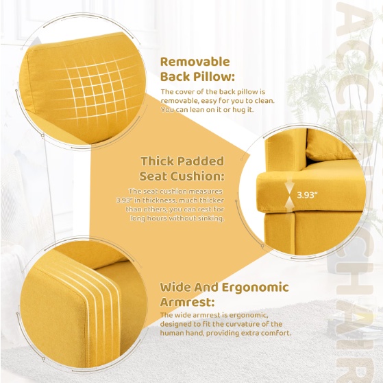 【Spaciou Seat】: Its 22-inch-deep seat can be a perfect corner where you can curl up with a warm cup of tea or a vibrant open space for rest and entertainment, each with its own character. In addition, the plump cushions will provide plenty of support.