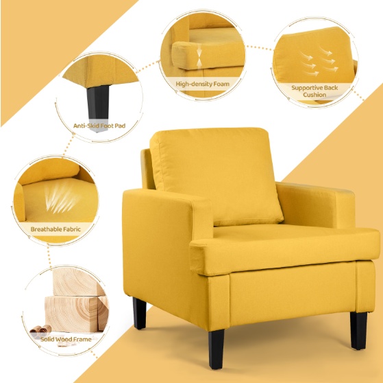 【Solid wood structure】: This living room armchair stands for durability and stability. The seat sits on a solid rubberwood base and is made of pocket springs wrapped in solid wood and high-density foam that can easily hold up to 350 pounds without sagging.