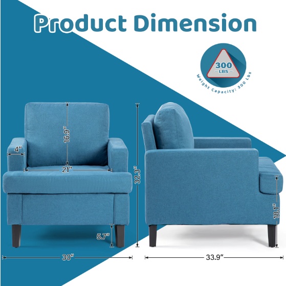Product name: Medieval Accent Chair, Blue Linen Armchair, Upholstered Single Sofa Chair for Bedroom Living Room (Blue)