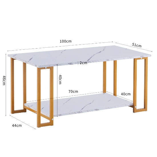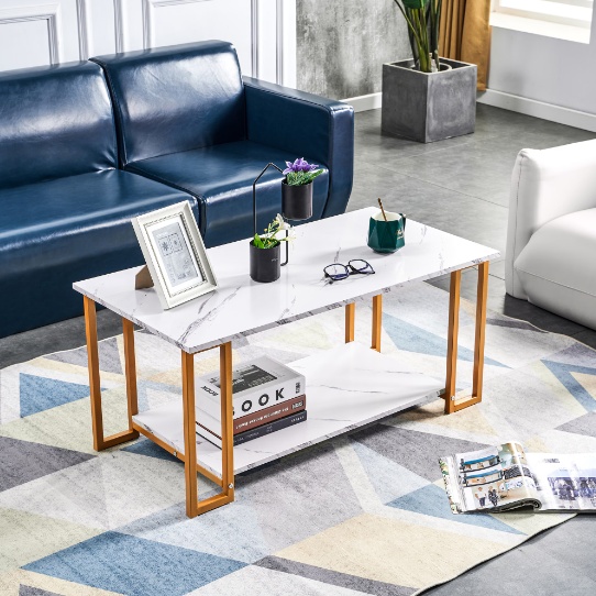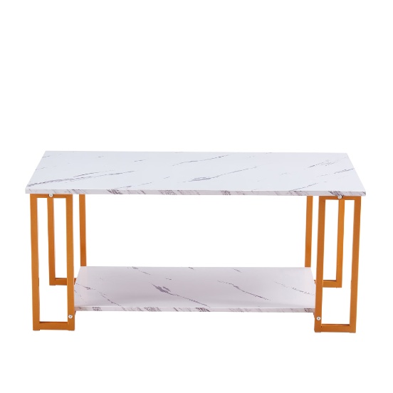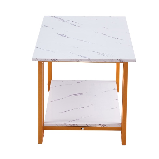 Product Name: D&N Coffee Table, 2 Layers 1.5cm Thick Marble MDF Rectangle 39.37″ L Tabletop Iron Coffee Table , Dining Room, Coffee Shop, Resterant, White Top, Gold Leg