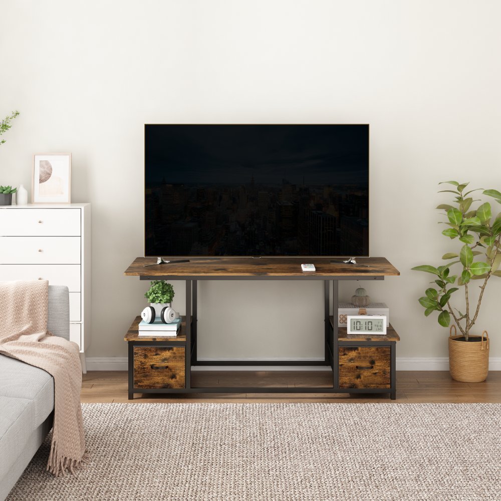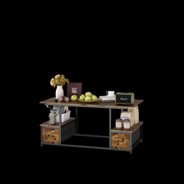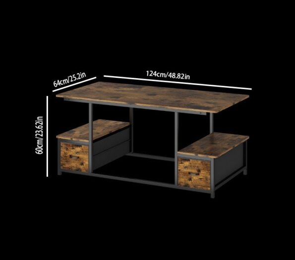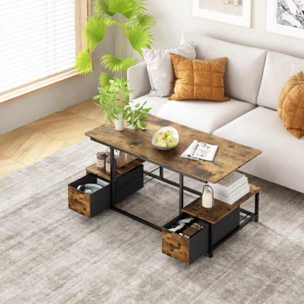 Industrial Coffee Table for Living Room, with Storage Shelf, Rivet Design, Wood Look Accent Furniture