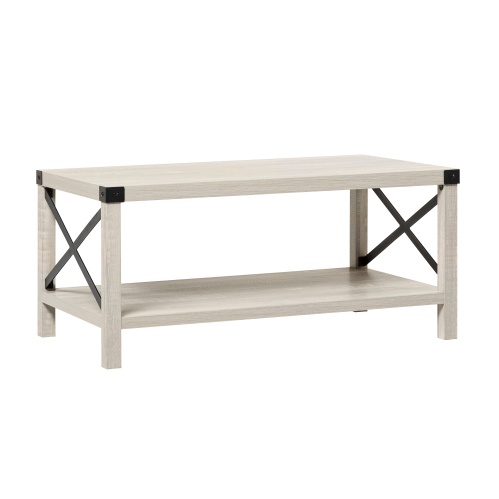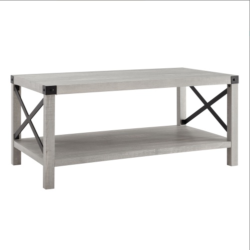 Product Name:Farmhouse Metal-X Coffee Table with Lower Shelf – Stone Grey