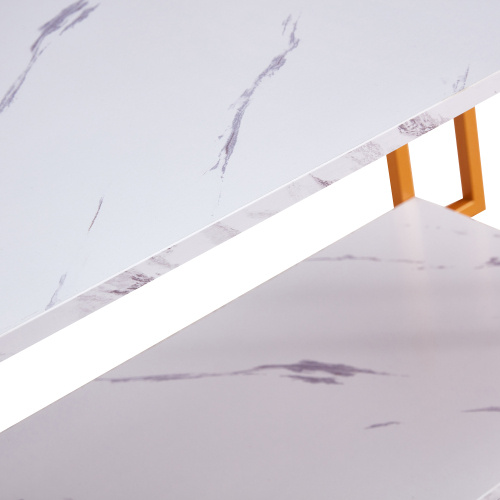 D&N coffee table, 2-story 1.5cm thick marble MDF rectangular 39.37 “L tabletop iron coffee table, restaurant, coffee shop, reservation, white top, gold legs