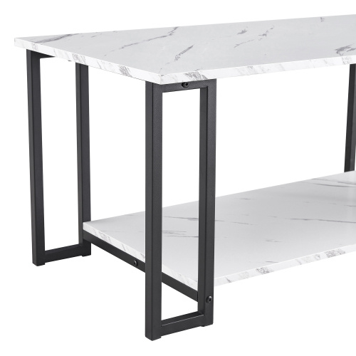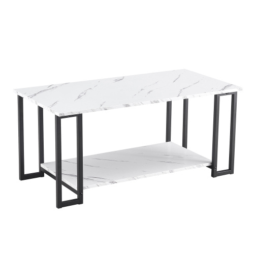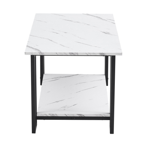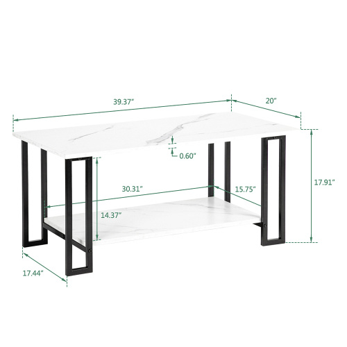 D&N coffee table, 2nd floor 1.5cm thick marble MDF rectangular 39.37 “L tabletop iron coffee table, restaurant, coffee shop, reserved, white top, black legs