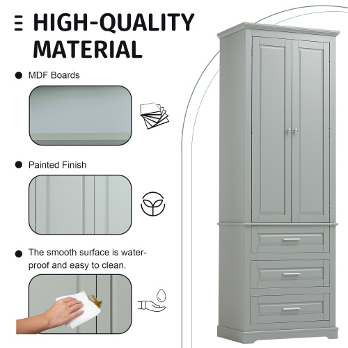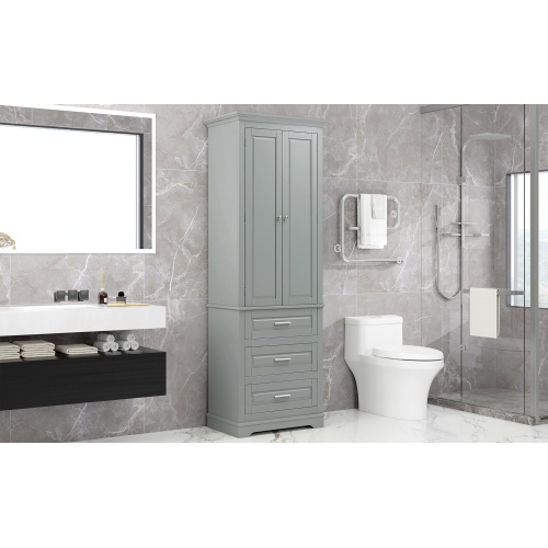 High storage cabinet with three bathroom/office drawers, grey