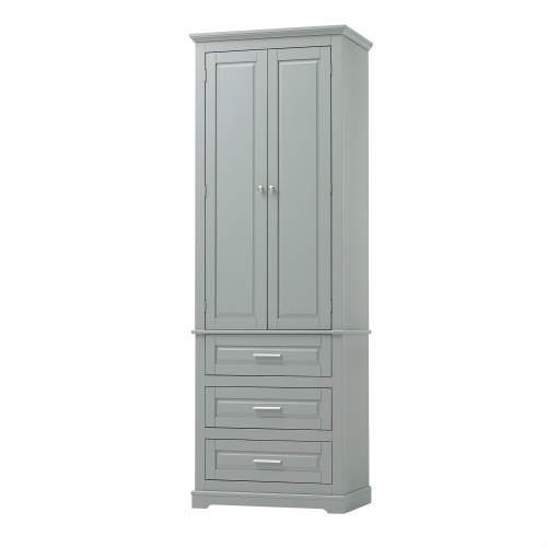 High Storage Cabinet With Three Drawers, Grey