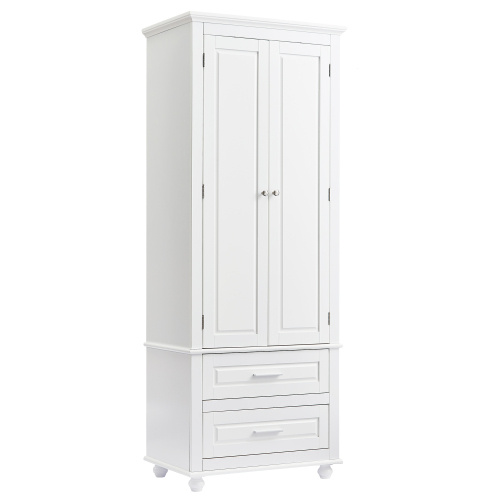Bathroom/office high storage cabinet with two drawers, white