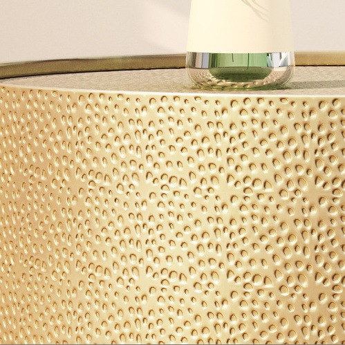 - HAMMERED METAL: This coffee table features a hammered surface to create a gorgeous textured look. This finish allows this piece aesthetic versatility, blending seamlessly with a range of decor styles.