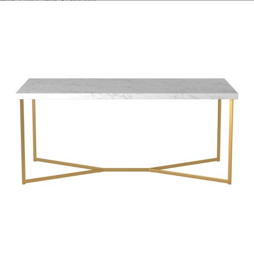 Product Name:Modern Glam Metal and Faux Marble Coffee Table – Faux White Marble/Gold