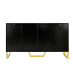 Excellent craftsmanship: This sideboard consists of a high-end black cabinet and four doors with gold handles and associated shelves. It adds a touch of elegance and elegance to any storage solution. The cabinet doors with linear concave and convex stripes enhance the three-dimensional effect. Its geometric lines add a beautiful touch to any modern décor and are perfect for storing cutlery and other kitchen items in an attractive and useful way.