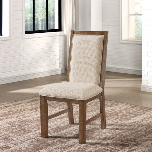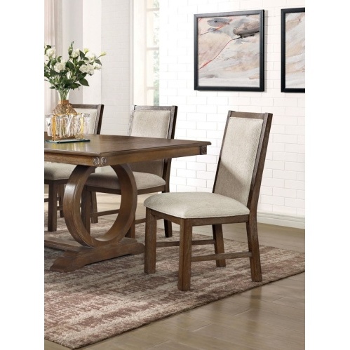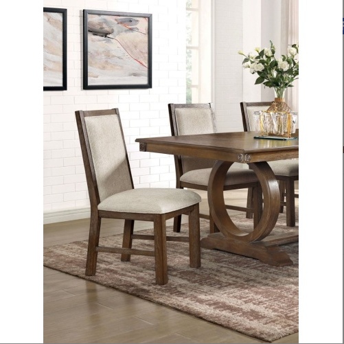 Description:- Delight family and guests alike in this rich rustic oak ensemble. Seat cushions are padded in a warm beige linen fabric that helps achieve an artful balance of beauty and function. Product Dimensions:- Dining Side Chairs – 19″W X 23″D X 38″H (SEAT HT: 18 1/2″, SEAT DP: 17 1/4″) Listing Includes :- Set of 2pc Side Chairs Only. DINING TABLE – NOT INCLUDED. Simple assembly require. Product Features:- Transitional Rustic Oak/Beige Fabric, Solid Wood, Wood Veneer, Others 100% Polyester
