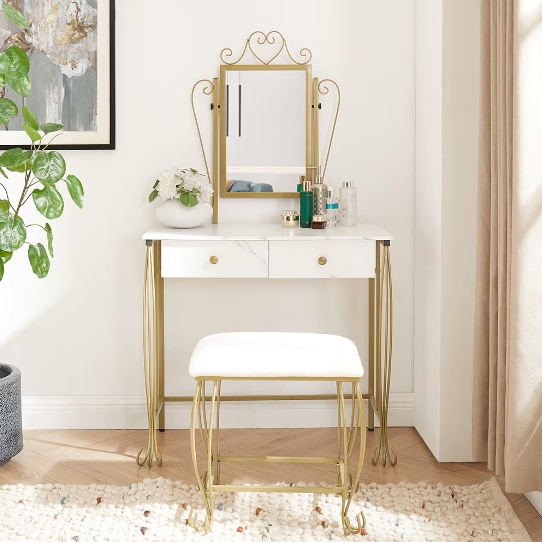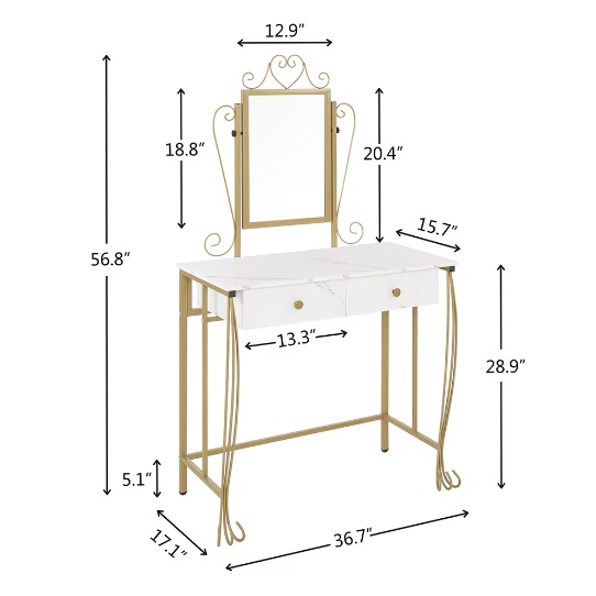 Product name: Vanity Table Set with Mirror & Stool,White Makeup Dressing Desk with Drawers for Girls,Women,Bedroom,Gift